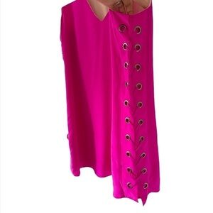 NWT Lavender Brown 100% Silk Hot Pink Shift Mini Dress