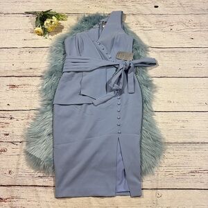 New with tags Lavish Alice Origami One-Shoulder Midi Dress in cornflower blue