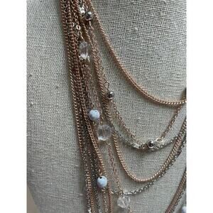 Brand new, with tags. Layered Necklace Rose Gold & Silver Chain with Enamel, Crystal/Clear and Silver Beads 21.5" in length, (which is adjustable). 11 tier necklace.This piece is fun and elegant necklace. Love the various and many layers this necklace showcases. This piece could go either way, dress it up for a formal event or work. Or dress it down with a chunky sweater for a fall and winter favorite. I'd say it's a cross between boho chic, cottage core, glam and elegant all in one.