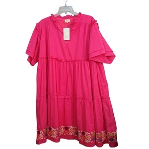 NWT Layerz Clothing Emily Hot Pink Embroidered Ruffle Tiered Dress Size XL