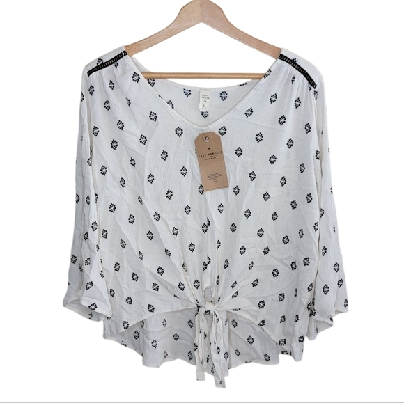 NWT Lazy Sundays | Black White Diamond Print Tie Front Top.