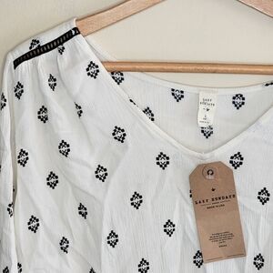 NWT Lazy Sundays | Black White Diamond Print Tie Front Top Size Small