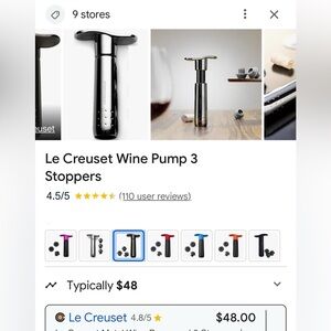 NWT Le Creuset WA-137AS Metal Wine Pump Preserves Open Wine (Stainless Steel)
