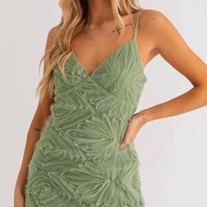 NWT Le Lis Liliana Mini Dress Light Green Textured Mesh Sheath Size Large