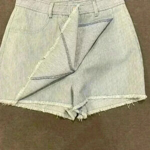 Size small Blue and white striped skort with frayed hem. Button and zipper fly closure Tiny stain on back shown in photo. Open to offers!