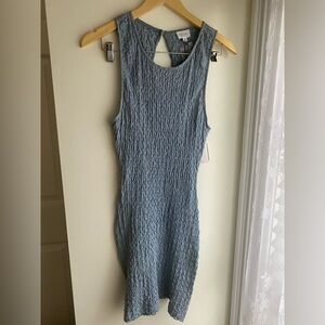 NWT Le Lis Textured Dusty Blue Mini Dress Bodycon Sleeveless Crinkle Keyhole