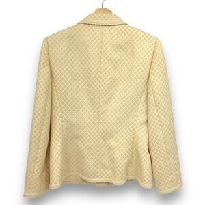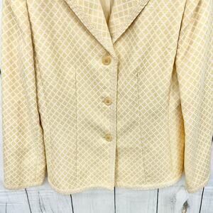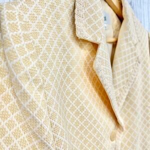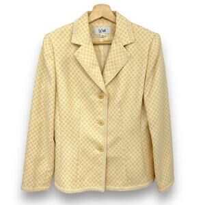 NWT Le Suit Town and Country Yellow Beige Diamond Tweed Blazer 3 Button SIZE 8