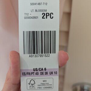 New With Tags, Light Blossom Le Suit Set wit sleeveless dress and long jacket. Minor discoloration one spot, back of jacket, see photos.