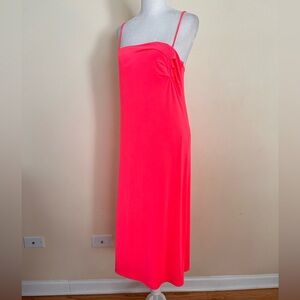 NWT Le Superbe Entourage Midi Slinky Satin Slip Dress Hot Neon Coral