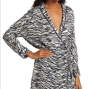 This playful crepe de chine romper is defined by a self-tie waist and bold zebra print.
