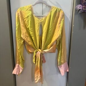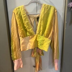 NWT Le Superbe Vibrant Pastel Wrap De La Sol Blouse Size L Flawless Summer Sexy