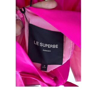 The dress is made by Le Superbe, a brand known for its high-quality clothing. It has never been worn and still has tags attached. The dress is suitable for any occasion, from a night out with friends to a formal event. Get ready to turn heads in this stunning mini dress.