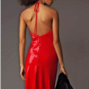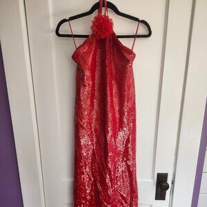 Brand new with tags, purchased from Anthropologie, size 8. This is a stunning red sequin dress with a beautiful red flower detail at the neck, definitely a statement dress! I can provide measurements upon request. I've included pictures of an area of the dress where some of the sequins need to be patted back down into place which can be done easily with your hand. This is not noticeable when wearing the dress, just if you look up close.