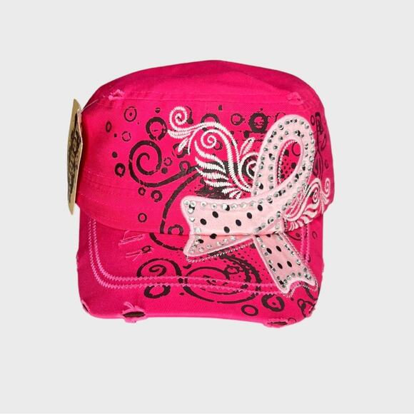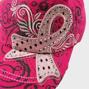 NWT Leader Rhinestone Pink Ribbon Cap Breast Cancer Awareness Bling Hat OSFM