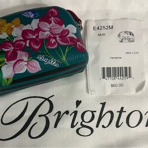 NWT Leather Brighton Hamptons Mini Coin Pouch Floral Butterfly