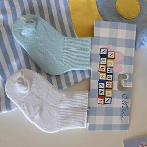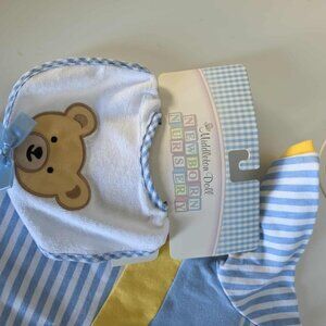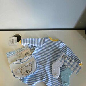 Includes: Blue & yellow Pj's, Teddy Bear bib, two pairs of socks (blue & White)