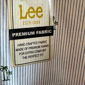 Get ready for summer with this stylish Lee Premium Quality button-down shirt in a refreshing blue and white striped pattern. Made from 100% cotton, this shirt is perfect for the warm weather ahead. The short sleeves and button-down collar add a casual touch to the shirt, making it suitable for any occasion. The shirt features a button closure and is labeled as size L, suitable for men. The shirt belongs to the "Florida" theme, which is perfect for those who love a relaxed and laid-back style.