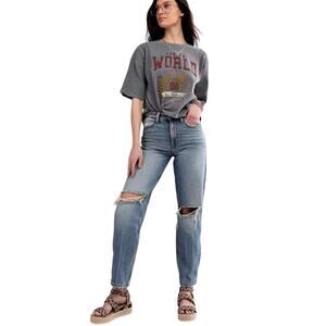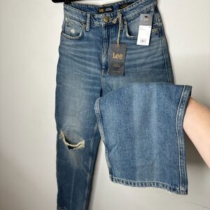 NWT Lee Vintage Medium Blue Wash High Rise Relaxed Stovepipe Distressed Jeans 28