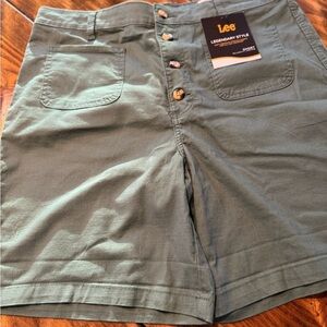 NWT Lee shorts Button front & front patch pockets stretch Leaf green 8” Size 16