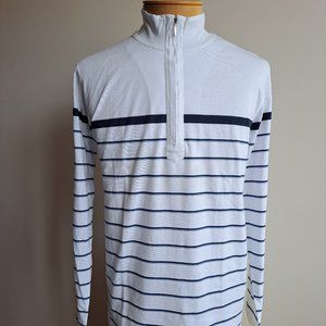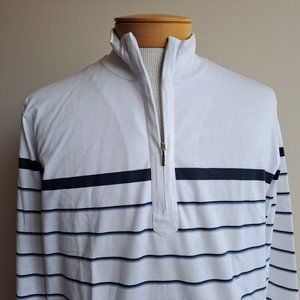 NWT Left Coast Tee Men's 100% Cotton White Blue Striped Sweater Size M