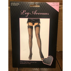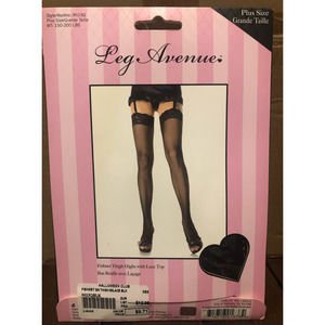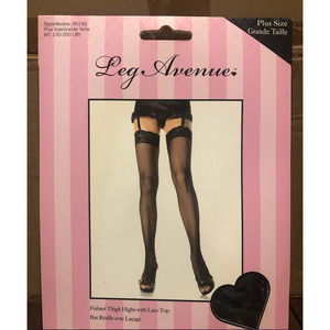 NWT Leg Avenue Fishnet Thigh Highs with Lace Top Plus Size Halloween Costume