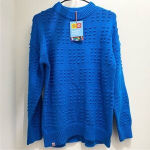 NWT Lego x Target Women's Blue Textured Polka Dot Sweater Blouse Top Sz M