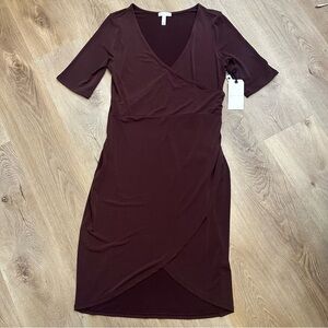 NWT Leith Chocolate Brown Wrap V-neck Sheath Dress 3/4 Sleeve