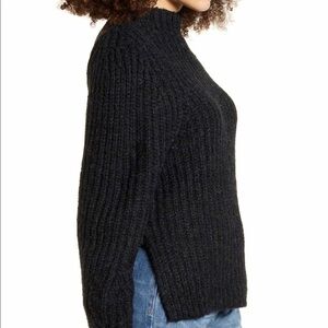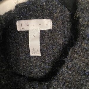 NWT Leith Mock Neck Sweate Black/Blue, Side Slits, Size Small