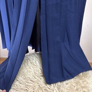 NWT Leith Navy Blue Pleated deep V-Neck, Faux Wrap Midi Dress