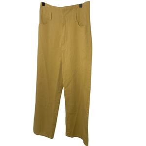 NWT Leli's Yellow Mustard Front High Rise Wide Leg Trousers Preppy Minimalist
