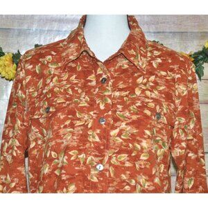NWT Lemon Grass Ladies M Burnt Orange Lightweight Jacket Button Up Leaf Pattern