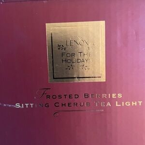 NWT! Lenox China - For The Holidays Frosted Berries Sitting Cherub Tea Light