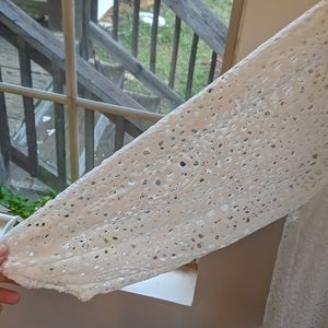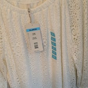 Soft lace crocheted white top, with sheer sleeves and attached slip. NWT XL, fits true to size