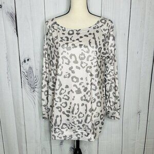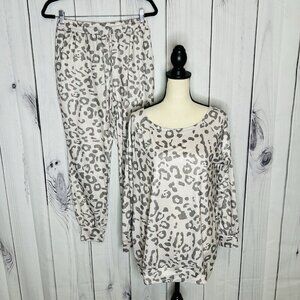 NWT Leo Rosi Womens Animal Print Pajama Sleepwear Set Sz S Gray Long Sleeve