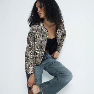 NWT! Leopard Animal Print Crop Quilted Puffer Jacket Open Front Lightweight Coat