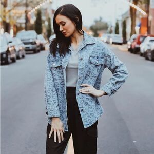With a stylish leopard print and a modern relaxed fit, this isn't your average denim jacket! Jacket is complete with silver buttons down the front and a length that pairs well with various outifts. 100% cotton.