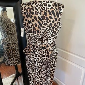 NWT Super cute leopard print dress with flattering peplum. Satin type material. Leopard/Cheetah/Animal Print.