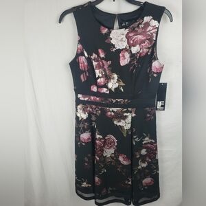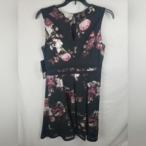 NWT Leslie Fay Floral Black Metalic Sleeveless Semi Formal Dress Sz 4
