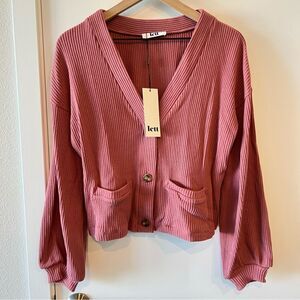 NWT Lett Lisse Ribbed Button Down Cardigan Sweater in Terra Cotta XL