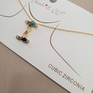 NWT Letter I Zirconia Monogram Gokd Dipped Necklace