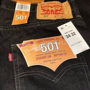 NWT Levi Men's 501 Straight Leg Black Jeans Size 34x32 Red Tab