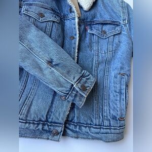 NWT Levi Strauss & Co Denim Blue Jean Sherpa Lined Original Trucker Jacket Small