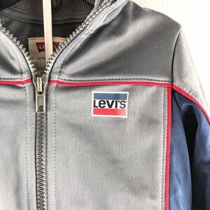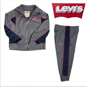 NWT Gray Levi’s jacket and matching pants, has blue and red accents. Perfect for any little boy😀