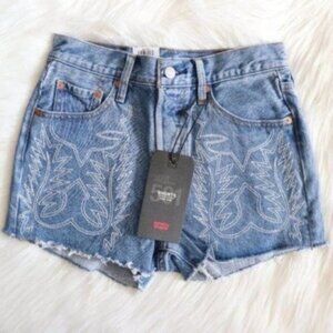 NWT Levis 501 High Rise Embroidered Light Blue Wash Denim Jean Shorts Size 24