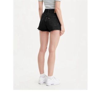 These Levi’s 501 High-Rise Denim Shorts offer a timeless, effortlessly cool look. Featuring the iconic button fly and a high-rise fit, these shorts sit perfectly at the waist to accentuate your figure. The raw hem adds a touch of vintage-inspired edge, while the classic black denim makes them a versatile staple that can be dressed up or down. Made from durable cotton denim, these shorts are built to last and soften over time for a comfortable, lived-in feel. Pair these shorts with a casual tee or dress them up with a chic top—the styling possibilities are endless.