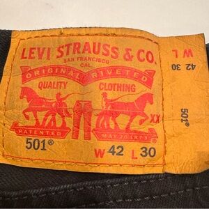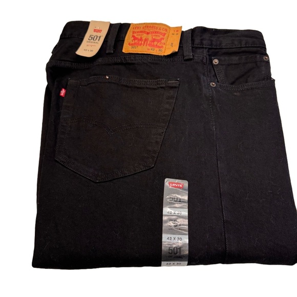 BRAND NEW with tags mens black 501 jeans. Original for, Button fly, straight leg. Size 42X30 See photos for measurements