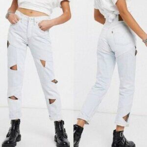 NEW Levi's 501 Original Cut Out Pieced Crop Light Wash High Rise Jeans Size 26
