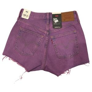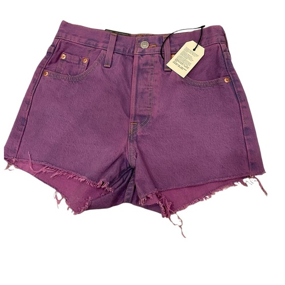 NWT Levi's 501 Premium Mini Shorts Fringe Button Fly in Purple Dye Size 23