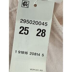 NWT Levi's 501 Skinny jeans in Summer Charm Pink feature a solid denim fabric wash with a button closure. Made of a cotton blend material, these high-rise jeans have a waist size of 31 inches and a size of 25. The jeans have a cropped style with pockets and a rise of 11 ¾ inches. The fabric type is denim and they are machine washable.