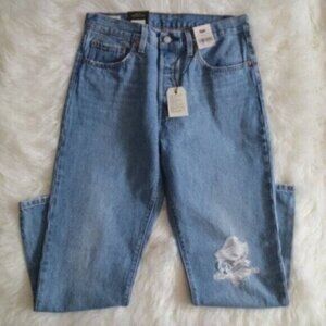 NWT Levi's 501 Straight Leg Jeans Size 28 Cropped High Rise Distressed